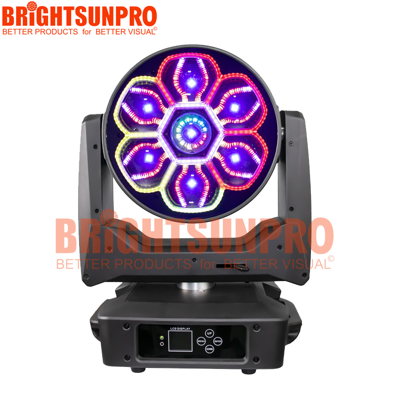 Main Bee Eye: 7*60W RGBW LED; MAC Aura: 12*10*0.2W+12*0.2W LED; Zonda Auxiliary: 210*0.2W LED;